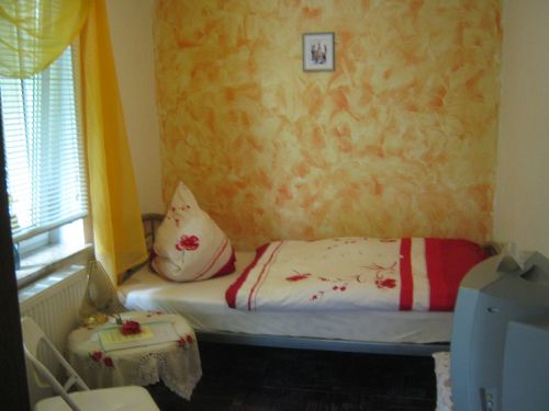 gemütlicher Raum, Es ist mit einem Bett, das Bad und die Toilette sind über den Flur zu erreichen und mit dem 2-Bettzimmer mit Kinderbett zu teilen.