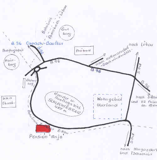 per Auto B96 Bautzen - Zittau bis Ebersbach/Sa. und weiter nach nebenstehender Skizze oder S148 Löbau - Neugersdorf bis Ebersbach/Sa. und weiter nach nebenstehender Skizze